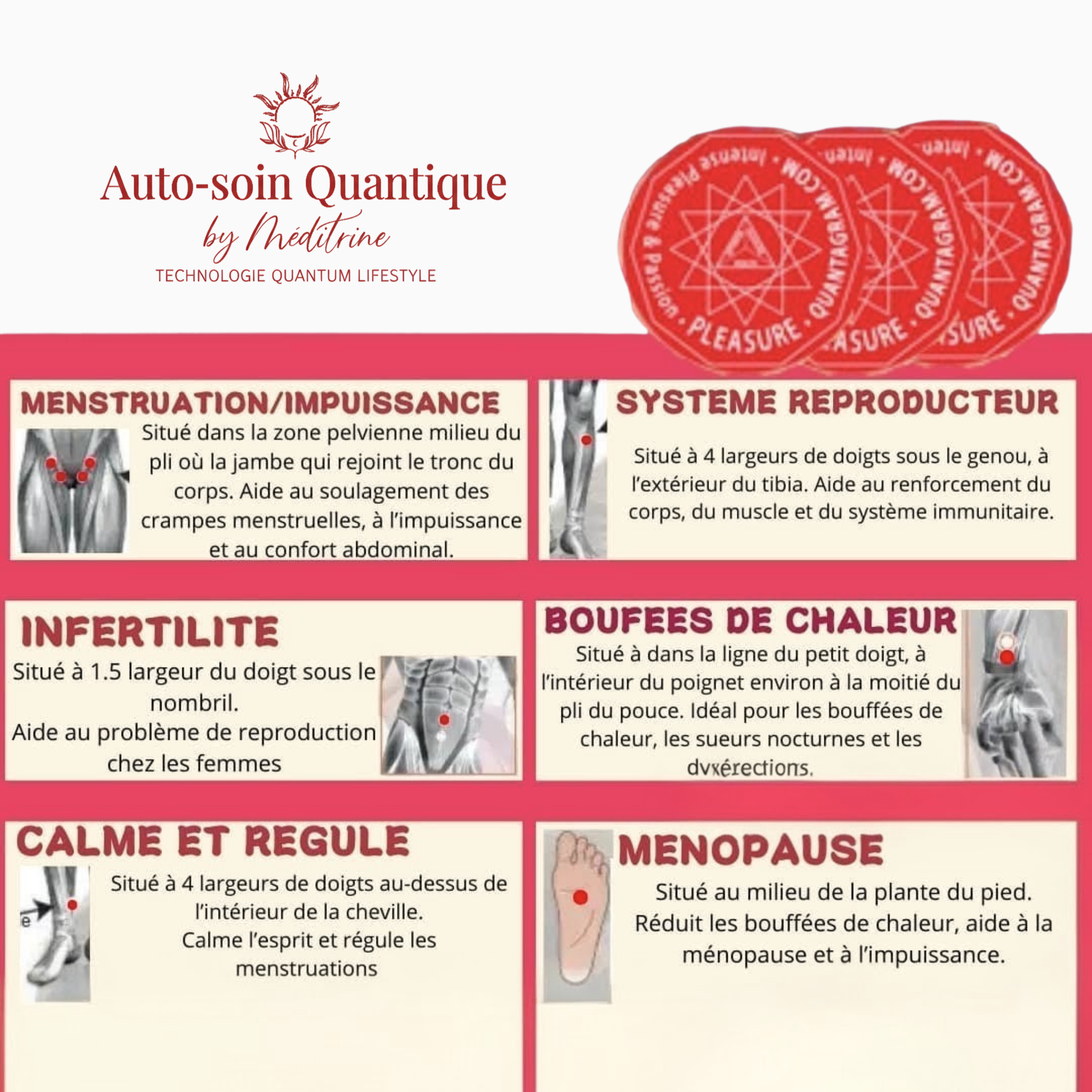 Chaque disque est non transdermique : aucune substance (hormone de synthèse, plante ou chimie) ne pénètre dans le sang. C’est l’information fréquentielle qui guide votre corps vers l’auto-régulation. C’est la solution idéale pour soulager les crampes menstruelles et les déséquilibres hormonaux sans les effets secondaires des traitements classiques.