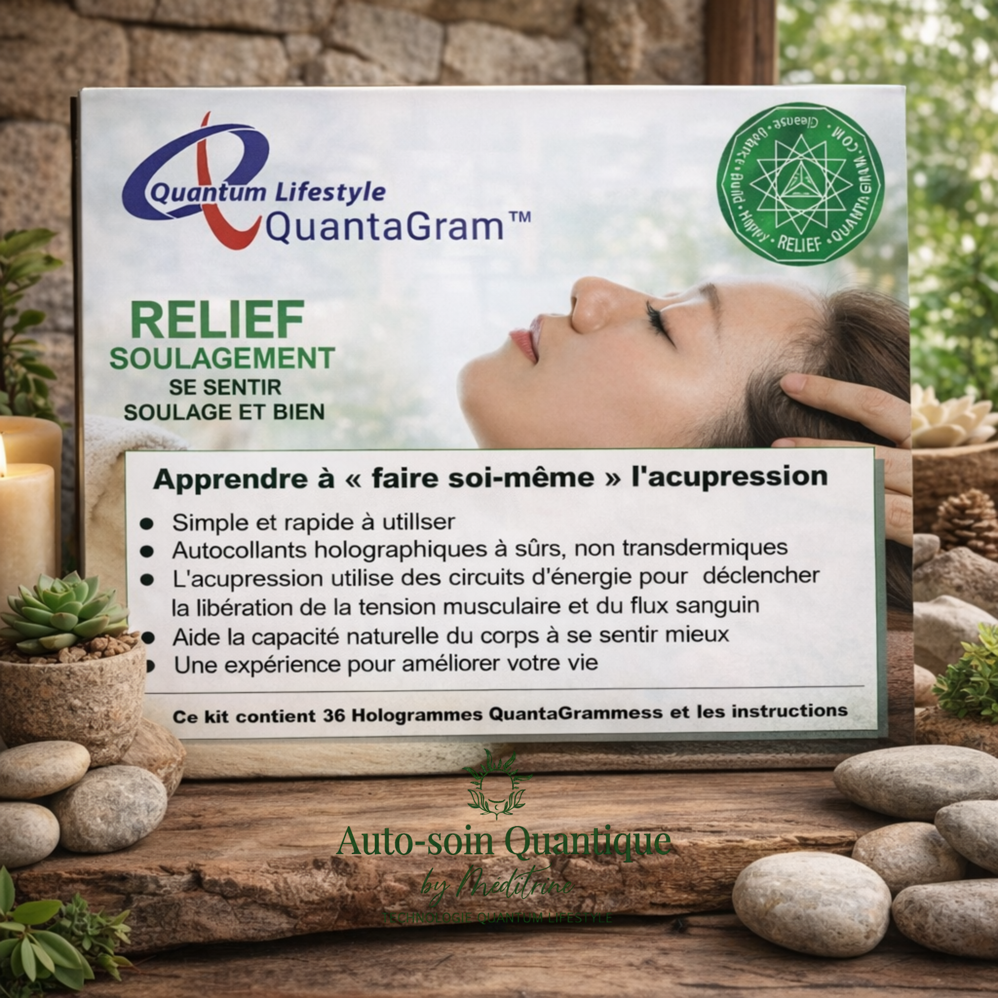 Dites adieu aux douleurs sans chimie. Le kit « Relief » de Quantum Lifestyle est votre allié naturel pour le soulagement immédiat des douleurs articulaires, musculaires ou chroniques. Grâce à la technologie holographique, agissez directement sur la zone douloureuse avec une précision professionnelle.
